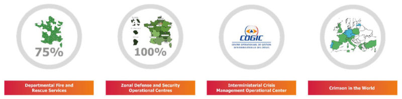 Adopté par la majorité des SDIS français, l’ensemble des Centres Opérationnels Zonaux ainsi que le Centre Opérationnel de Gestion Interministérielle des Crises (COGIC), Crimson TACTIC est la plateforme leader pour le pilotage des interventions d’urgence. Bien plus qu’un outil de partage de SITAC, elle accompagne les forces de secours et de sécurité dans la gestion de tous leurs engagements, des interventions du quotidien jusqu’aux crises majeures.